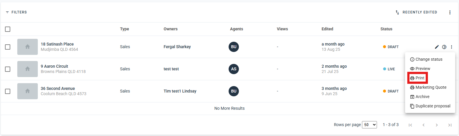 select the proposal you'd like to print