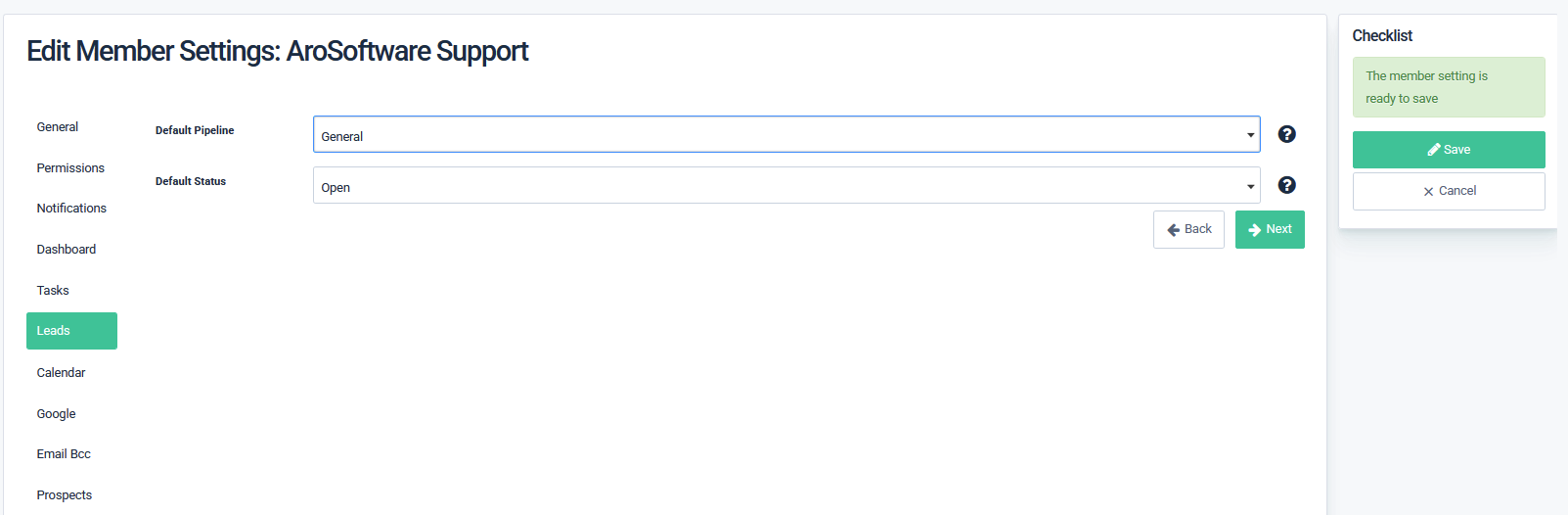 Changing lead Pipeline Preferences in team member settings