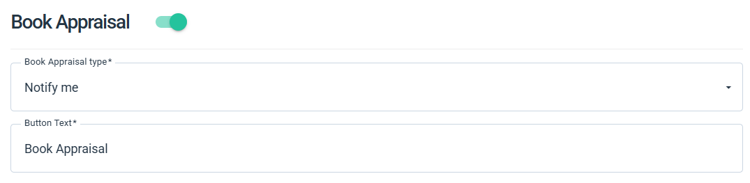 - Button text - You can edit to add a custom name for your Book Appraisal button.
